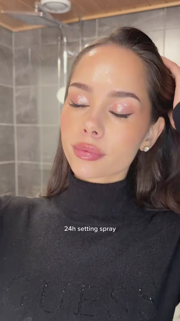 Fijador en spray que sella el maquillaje hasta por 24 horas con un acabado natural y duradero. Su fórmula liviana a base de agua, sin siliconas, crea una barrera intransferible, resistente al agua y al sudor. Enriquecido con centella asiática y polifenoles de manzana verde, hidrata, calma la piel y controla el sebo. La tecnología de dispersión de luz suaviza visualmente poros e imperfecciones, dejando un acabado radiante y uniforme.